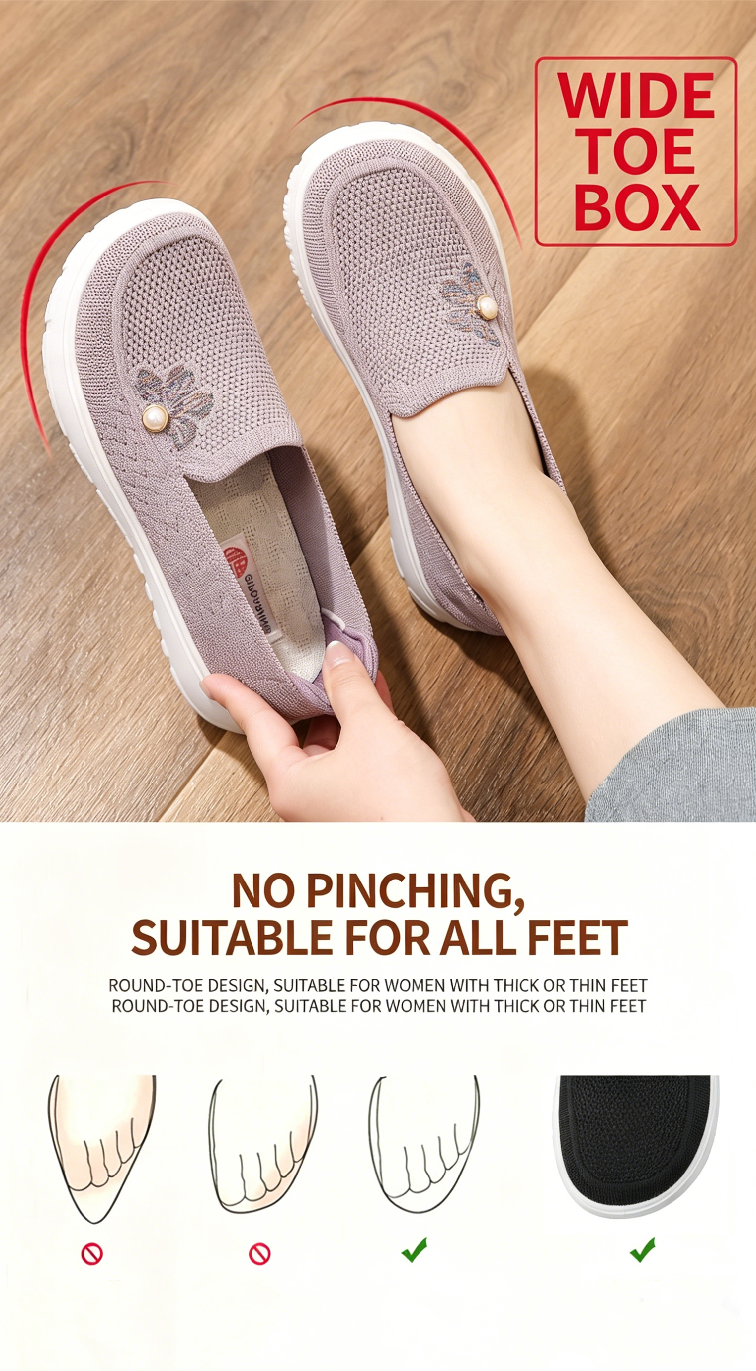 ✅Breathability: The material ensures excellent ventilation, preventing excessive foot sweating and maintaining a fresh feel.