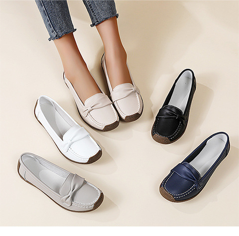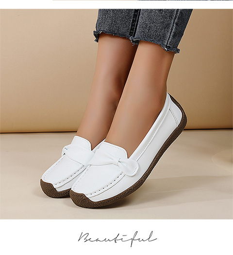 Women's Bow-Detail Leather Loafers - Comfortable Shoes for Seniors