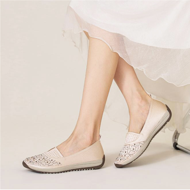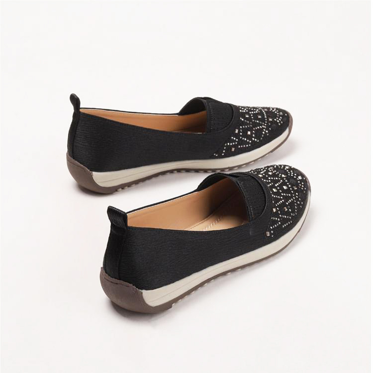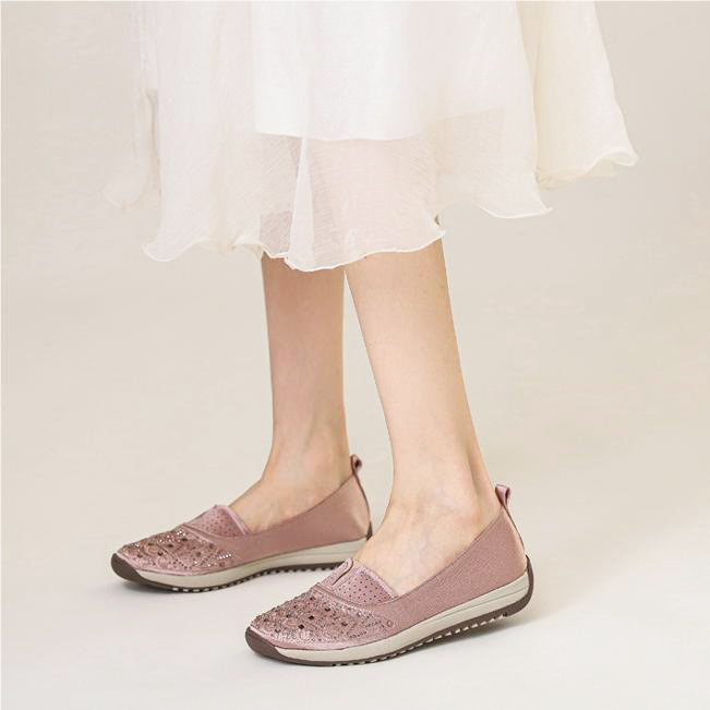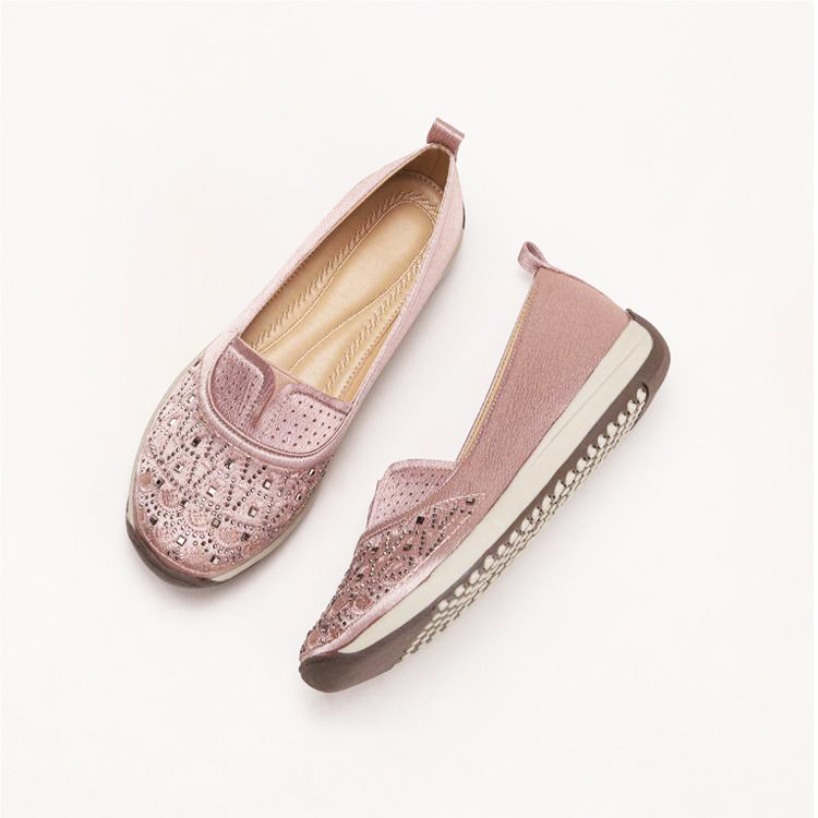 High-quality stretch mesh knitted upper, embellished with sparkling rhinestones, fashionable and breathable.