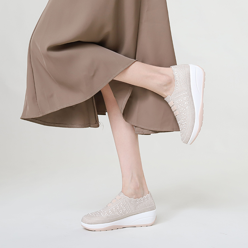 Stylish & Practical ------ The stylish look makes this walking shoes great for women of all ages. What's more, the outsole gives you a stronger grip to walk more stably.The thick bottom design allows you to walk on muddy or rainy roads without getting your shoes wet.